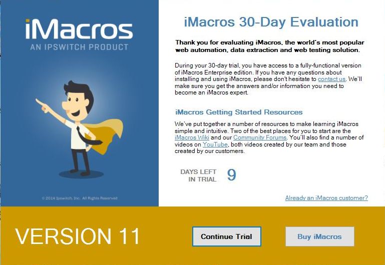 「iMacros 30-Day Evaluation」というメッセージが